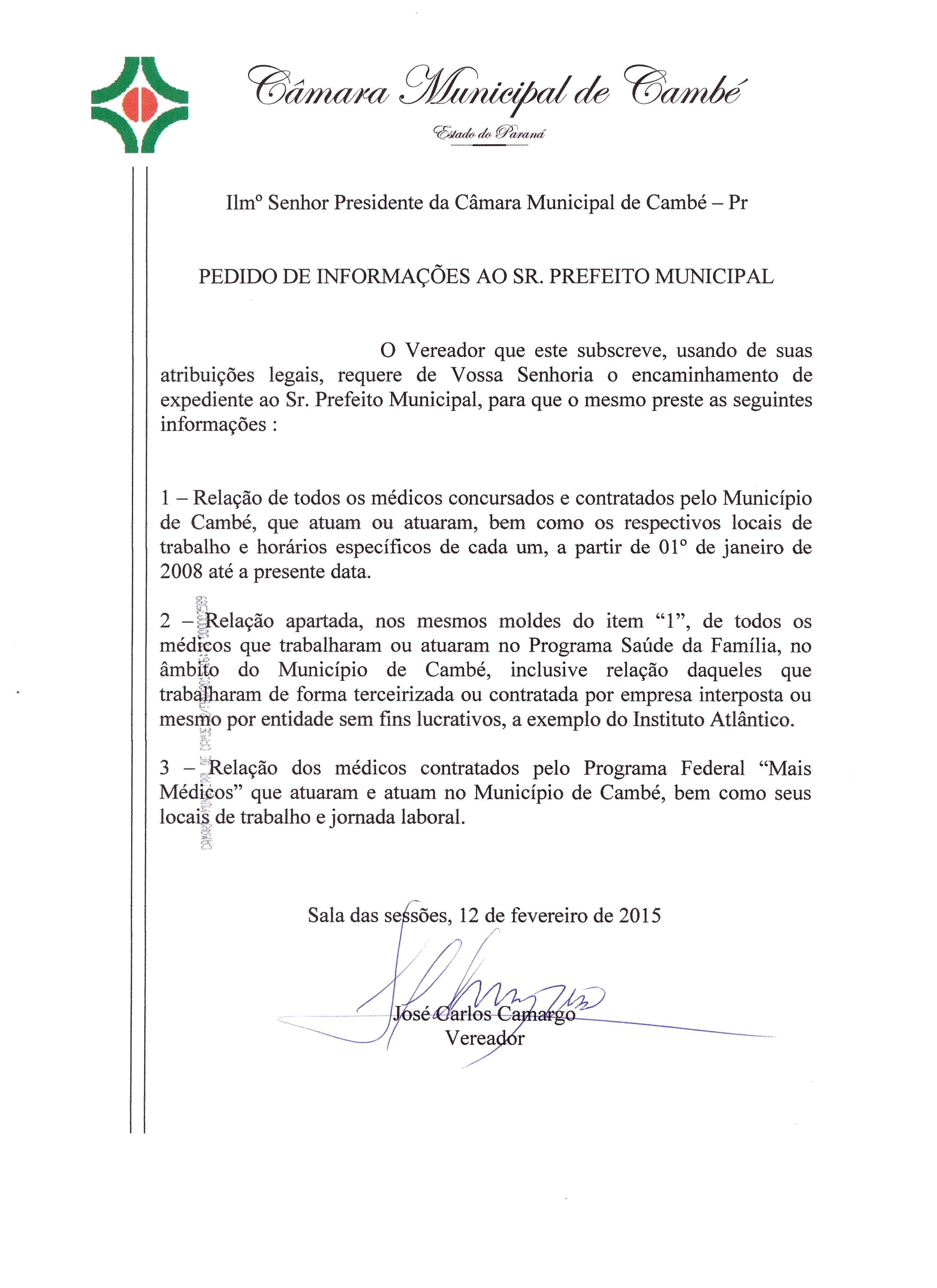 PINF 12/2015 - Pedido de Informação